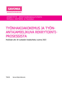 Opinnäytetyössä tutkittiin rekrytointiprosessin eri vaiheiden vaikutusta hakijakokemukseen ja sitä myötä työnantajamielikuvaan. Sen tarkoituksena oli perehtyä rekrytointiprosessiin nuoren työnhakijan näkökulmasta ja selvittää mitkä menettelytavat luovat hakijana katsottuna onnistuneen rekrytointiprosessin. Tutkimuksen myötä työn tavoitteena oli kehittää rekrytointiprosessia hakijaystävällisemmäksi ja selvittää miten nuoret suhtautuvat rekrytointiprosessiin.