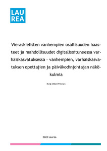 Vieraskielisten vanhempien osallisuuden haasteet ja mahdollisuudet digitalisoituneessa varhaiskasvatuksessa : vanhempien, varhaiskasvatuksen opettajien ja päiväkodinjohtajan näkökulmia