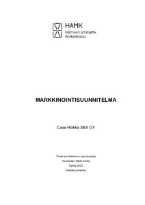 Markkinointisuunnitelma : case Hölkkä SBS Oy