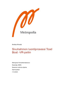 Opinnäytetyössä käydään läpi, miten Toad Boat -VR-peliin luodaan sivuhahmoja ja minkälaisia haasteita VR:n käyttäminen tuo. Tavoitteena on esitellä yksityiskohtaisesti hahmonluonnin työnkulku ja selventää, miten sivuhahmon suunnittelu eroaa päähahmojen suunnittelusta. Projektiosuudessa luodaan Toad Boat -pelin sivuhahmon konseptikuvia, 3D-malli ja tekstuurit. Sivuhahmon on tarkoitus tulla käyttöön Toad Boat -pelin toiseen tasoon.