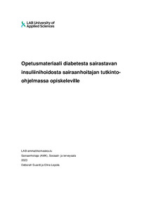 Opinnäytetyön tavoitteena on edistää sairaanhoitajaopiskelijoiden osaamista diabeetikoiden hoidossa opetusmateriaalin avulla. Opinnäytetyön tarkoituksena on tuottaa opetusmateriaali PowerPoint diaesityksen muodossa LAB-ammattikorkeakoululle. Opetusmateriaali on tarkoitettu LAB-ammattikorkeakoulullehoitotyön koulutukseen.