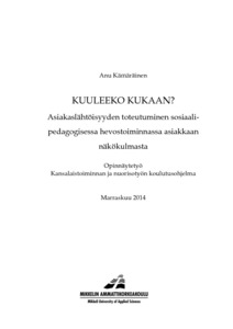 Sosiaalipedagogisen hevostoiminnan tutkimuksessa asiakaslähtöisyyden todellisen toteutumisen selvittäminen on jäänyt katvealueeseen ja tämän tutkimuksen tarkoituksena olikin valottaa tuota hämärän pei-tossa ollutta aluetta. Kysymysmuodossa tässä tutkimuksessa etsittiin vastausta siihen, kuinka sosiaalipe-dagogisen hevostoiminnan asiakaslähtöisyys toteutuu asiakkaiden näkökulmasta? Aineisto muodostui viiden nuoren, kahden tytön ja kolmen pojan haastattelumateriaalista, jotka kerättiin teemahaastatteluilla kesällä 2014.