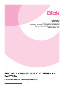 Koulutusmateriaali tuotettiin diaesityksen muodossa. Materiaalissa käsiteltiin yleisiä juomaveden välityksellä tarttuvia infektiotauteja ja niiden ennaltaehkäisyä sekä erilaisia vedenpuhdistusmenetelmiä. Koulutusmateriaali lähetettiin yhteistyökumppanille arvioitavaksi. Palautetta varten luotiin kysely, joka lähetettiin saatekirjeen kanssa noin 5–10 lähetystyöntekijälle. Kyselyyn saatujen vastauksien perusteella koulutusmateriaalia kehitettiin edelleen, jonka jälkeen Lähetysyhdistys Kylväjä sai valmiin koulutusmateriaalin käyttöönsä lähetyskoulutukseen. The purpose of this thesis was to produce training material for missionaries addressing the impact of clean drinking water in the prevention of infectious diseases. The aim was to increase the knowledge of missionaries on the subject and thus support their well-being.