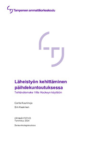 Tämän opinnäytetyön tarkoituksena tuotettiin Villa Hockeyn päihdekuntoutukseen läheistyötä kehittävä tehtävälomake. Idea läheistyön kehittämiseen nousi esiin työelämätahon tarpeesta sekä tekijöiden omasta kiinnostuksesta aiheeseen. Opinnäytetyön tuotoksena valmistui tehtävälomake päihdekuntoutujalle ja hänen läheiselleen. Tehtävälomakkeen tavoitteena on avata keskusteluyhteyttä kuntoutujan ja läheisen välille ja tällä tavoin parantaa heikentynyttä ihmissuhdetta.