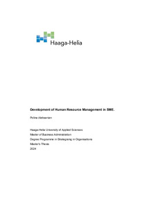 The thesis aimed to strategically develop Human Resource Management in SME by developing, standardizing, and facilitating the operations within the department. The purpose followed during the thesis was to enable the growth of the case company and to promote the development of the operations of the HR department.