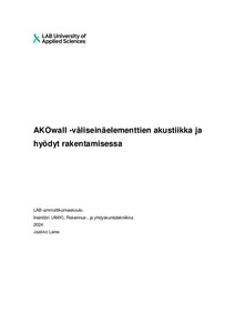 Tämä opinnäytetyö on tehty Rakennusbetoni- ja Elementti Oy:n tilauksesta heidän käyttöönsä. Opinnäytetyö toimii suunnitteluohjeena, joka auttaa suunnittelijaa ymmärtämään rakennusakustiikkaa ja äänen kulkeutumista yleisellä tasolla tilojen välillä. Opinnäytetyön tarkoitus on auttaa suunnittelijaa ymmärtämään Rakennusbetoni- ja Elementin toteuttaman tuotteen AKOwall-väliseinäelementin akustiset ominaisuudet ja miten kyseiset ominaisuudet on saavutettu.