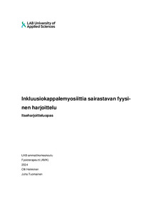Opinnäytetyön tarkoituksena oli kehittää inkluusiokappalemyosiittia sairastavalle itseharjoitteluopas. Tavoitteena oli laatia suuntaviivat fyysiselle harjoittelulle, jonka avulla sairastuneen toimintakykyä voidaan ylläpitää. Opinnäytetyössä yhteistyökumppanina toimi Lihastautiliitto Ry.