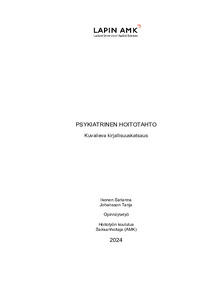 Tämän opinnäytetyön tarkoituksena oli kuvata psykiatrista hoitotahtoa ja sen merkitystä psykiatrisen potilaan hoidossa, sekä siihen liittyviä mahdollisia hyötyjä ja esteitä potilaan, ihmisten välisestä sekä hoitavan tahon näkökulmasta. Opinnäytetyön tavoitteena oli lisätä tietoisuutta psykiatrisen hoitotahdon merkityksestä, itsemääräämisoikeudesta ja sen hyödynnettävyydestä psykiatrisen potilaan hoitotyössä. Opinnäytetyön tavoitteena oli myös lisätä psykiatrisen hoitotahdon tunnettavuutta, ja sen avulla vaikuttaa hoitotyön laatuun kehittävästi. Opinnäytetyn tuloksia voidaan tulevaisuudessa käyttää myös mahdollisten jatkotutkimusten lähtökohtana. Opinnäytetyön tulosten pohjalta voi tehdä esitteen tai videon, jossa kerrotaan psykiatrisesta hoitotahdosta. Opinnäytetyö toteutettiin kuvailevana kirjallisuuskatsauksena, johon muodostui kolme tutkimuskysymystä. Opinnäytetyön aineistoksi valikoitui kuusi tutkimusartikkelia, jotka analysoitiin käyttämällä induktiivisen sisällönanalyysin menetelmää.