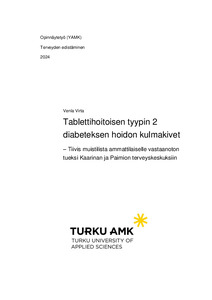 Tyypin 2 tablettihoitoisten diabeetikkojen hoito siirtynyt diabeteshoitajilta terveyskeskuksen tiimeille Varsinais-Suomen hyvinvointialueella sotealue 3:ssa. Tasapuolisen ja näyttöön perustuvan ohjauksen tarjoamiseksi tarvittiin sairaanhoitajien ohjaustyön tueksi työkalu. Tuotoksena saatiin aikaiseksi laminoitu taskukortti ja aloituspakkaus, joka sisältää verensokerimittarin ja oppaat vastadiagnosoidulle tyypin 2 diabeetikolle. Ne kehitettiin antamaan potilaille tasavertaista ja näyttöön perustuvaa ohjausta.