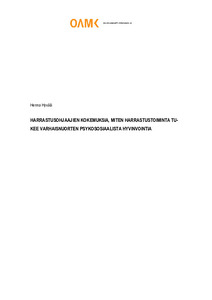 Opinnäytetyön tarkoituksena oli kuvailla harrastusohjaajien kokemuksia, miten harrastustoiminta tukee varhaisnuorten psykososiaalista hyvinvointia. Tavoitteena oli tuottaa tietoa harrastustoiminnan hyvinvointivaikutuksista, jota voidaan hyödyntää harrastustoiminnan kehittämisenä. Yhteistyökumppanina toimi Limingan kunta.