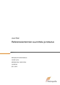 Tämän insinöörityön tavoitteena oli suunnitella ja valmistaa kahdet erityyppiset antennit kahdelle eri taajuudelle. Antennien on tarkoitus toimia referenssiantenneina automatisoidussa antennien säteilysuuntakuvion mittausjärjestelmässä radiokaiuttomassa tilassa. Antennien on tarkoitus toimia em. järjestelmässä opetus- ja mittauskäytössä.
