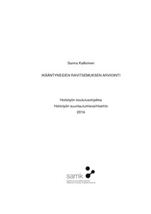 Tämän opinnäytetyön aiheena oli ikääntyneiden ravitsemuksen arviointi. Yhteistyö-kumppanina toimi Porin kaupungin perusturva ja tutkimukselliseen osuuteen liittyvä kysely toteutettiin Liinaharjan vanhainkodin henkilökunnalle Porissa.