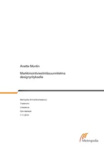 Opinnäytetyöni tavoitteena on laatia markkinointiviestintäsuunnitelma Muovolle. Muovo on kahden naisen vuonna 2009 perustama pieni designyritys, jolla on oma tuotemerkki ja suunnittelutoimisto. Opinnäytetyössä käsitellään viestintään liittyviä markkinoinnin keinoja ja markkinointitoimet on rajattu Suomeen. Työ on tehty mukaillen Muovon resursseja ja toiveita.