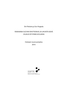 Opinnäytetyön tarkoituksena oli selvittää raskaana olevien liikunta- ja ravitsemustottumuksia sekä miten he ovat kokeneet liikunta- ja ravitsemusohjauksen äitiysneuvolassa. Tavoitteena oli tuottaa tietoa äitiysneuvolan terveydenhoitajille, jotta raskaana olevien liikunta- ja ravitsemusohjausta voidaan mahdollisesti kehittää saadun tiedon perusteella.