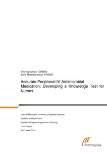Tämän opinnäytetyön tarkoituksena oli tehdä tietotesti sairaanhoitajille perifeerisen suonensisäisen antimikrobihoidon oikeellisuudesta.