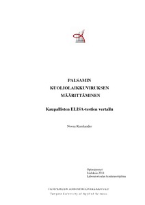 Opinnäytetyö tehtiin Elintarviketurvallisuusvirasto Evirassa, ja sen tavoitteena oli saada Kasvintuhoojajaostossa nykyisin käytössä olevan kaupallisen ELISA-kitin rinnalle toinen kaupallinen testikitti, jolla olisi mahdollista määrittää palsamin kuoliolaikkuvirusta. Testiä voitaisiin käyttää epäselvien tai heikkojen positiivisten tulosten varmistamisessa. Työn tarkoituksena oli vertailla neljää kaupallista ELISA-testikittiä, joiden valmistajat olivat Loewe, Agdia, DSMZ ja PRI.