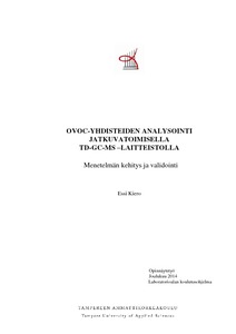 Opinnäytetyö toteutettiin kevään ja kesän 2014 aikana Ilmatieteen laitoksen Ilmanlaadun ryhmän orgaanisessa laboratoriossa. Työn tarkoituksena oli kehittää menetelmä, joka soveltuu OVOC-yhdisteiden tutkimiseen ulkoilmasta jatkuvatoimisella termodesorptio-kaasukromatografi-massaspektrometrillä. Tavoitteena oli pystyä hyödyntämään kehitettyä menetelmää kaupunki- ja taustailmatutkimuksissa, joissa seurataan OVOC-yhdisteiden pitoisuusvaihtelua sekä tutkitaan yhdisteiden lähteitä ja vaikutusta ilmakemian eri osa-alueisiin.