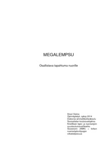 Veima, Ilmari. MegaLempsu – Osallistava tapahtuma nuorille. Kauniainen, syksy 2014, 52 s., 5 liitettä. Diakonia-ammattikorkeakoulu, Sosiaalialan koulutusohjelma, Kristillinen lapsi- ja nuorisotyön suuntautumisvaihtoehto, sosionomi (AMK) + kirkon nuorisotyönohjaajan virkakelpoisuus.