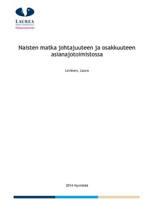 Opinnäytetyössä haluttiin selvittää syitä siihen, miksi naisia on edelleen niin vähän osakkaina isoissa asianajotoimistoissa. Työssä haluttiin erityisesti etsiä vastausta siihen, mitkä tekijät edesauttavat naisten nousua osakkaiksi ja mitkä tekijät mahdollisesti hidastavat heidän nousua osakkaiksi. Naisjohtajuus aiheena on hyvin laaja, joten päätin rajata aiheen tutkimisen neljän teeman ympärille, jotka ovat naisten stereotyyppinen käyttäytyminen, naisten ja miesten tasa-arvo työelämässä, henkilökohtaiset ominaisuudet ja tahto sekä vanhemmuus ja perhe. Valitsin nämä teemat, koska ne ovat hyvin arkisia ja ovat jokaisen päivittäisessä elämässä hyvin vahvasti läsnä. Teemojen arkisuus ja ihmisläheisyys auttavat ymmärtämään tutkittavaa ilmiötä paremmin.