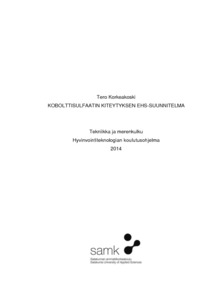 Tämän työn tarkoitus on tehdä EHS – suunnitelma kobolttisulfaattituotannolle. Samassa yhteydessä laajennetaan myös nikkelisulfaatin tuotantoa, joten sitä on myös sivuttu työssä. EHS -suunnitelman lisäksi työhön on kuulunut työohjeiden kirjoittaminen ja päivittäminen sekä koulutusmateriaalin suunnitteleminen ja tuottaminen prosessinhoitajille.