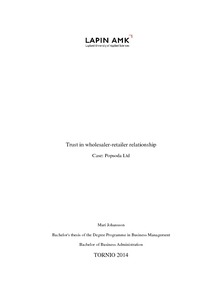 Trust in wholesaler-retailer relationship : Case: Popsoda Ltd