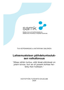 Opinnäytetyön tarkoituksena oli kuvata laitosmuotoisen päihdekuntoutuksen vaikuttavuutta asiakasnäkökulmasta. Opinnäytetyön tavoitteena oli, että yksikkö voi saatujen tulosten avulla mahdollisesti kehittää toimintaansa asiakaslähtöisemmäksi. Opinnäytetyön tilaajana toimi Satakunnan hyvinvointialueen Porin katkaisuhoito- ja kuntoutumisyksikkö.