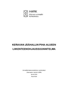 Tässä opinnäytetyössä tarkastellaan liikenteenohjaussuunnitelman laatimista Keravan jäähallin piha-alueelle ja raportoidaan työn eri vaiheet. Helsingin Jokerit pelaa osan Mestis-kauden 2023–2024 kotiotteluistaan Keravalla ja Keravan jäähallin liikenteenohjaus oli päivitettävä tämän tason ottelutapahtumaan sopivaksi. Tavoitteena oli toteuttaa liikenteenohjaussuunnitelma ennen Helsingin Jokereiden ensimmäistä harjoituspeliä Keravalla 8.9.2023. Suunnittelutyö on tehty ennen Mestis-kauden alkua, mutta erilaisia muutoksia toteutuneeseen suunnitelmaan tehtiin myös kauden aikana. Työn toimeksiantajana toimi Keravan kaupunkitekniikka.