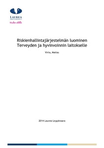 Opinnäytetyön tavoitteena oli tuottaa kohdeorganisaatiolle yhtenäinen, kattava ja systemaattinen riskienhallinnan kokonaisuus. Parhaimmaksi toteutustavaksi riskienhallinnan kehittämiselle todettiin riskienhallintajärjestelmän luominen. Riskienhallintajärjestelmä sisältää kaikki elementit, joita kohdeorganisaatio tarvitsee riskienhallintansa toteuttamiseen ja kehittämiseen. Opinnäytetyön kohdeorganisaationa toimi Terveyden ja hyvinvoinnin laitos, jossa riskienhallinnan kehittäminen oli ensisijaisen tärkeää monialaisen ja kompleksisen toimintaympäristön johdosta.