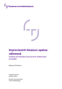 Opinnäytetyön tarkoituksena oli valmistaa ilmaisutaitoja vahvistavia improvisointiharjoituksia sisältävä käsikirja teini-ikäisille soitonoppilaille, jotka tutustuvat improvisointiin mahdollisesti ensimmäistä kertaa. Keskeisenä tavoitteena oli toteuttaa kokonaisuus erilaisia mielekkäitä harjoitteita vahvistamaan oppilaan omaehtoista luovaa ilmaisua. Keskeisenä näkökulmana käsikirjassa toimii se, että oppilaan on mahdollista saada improvisointiharjoituksista mielekkäitä ilmaisun kokemuksia myös kohtaamistaan soitannollisista haasteista huolimatta.