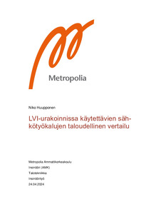 Opinnäytetyön aiheena oli tutkia LVI-urakoinnissa käytettävien sähkötyökalujen kustannuksia yritykselle. Työssä vertailtiin LVI-alan yleisimpiä sähkötyökalujen taloudellisia kustannuksia sekä ominaisuuksia. Laskelmien pohjana käytettiin Uudenmaan LVI-talon tämänhetkistä leasing-sopimusta työkalujavalmistaja Hiltin kanssa. Hiltin vertailukohtana oli käytetty Makitan sähkötyökaluja.