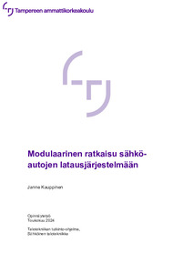 Työssä keskityttiin työn tilaajan toiveesta sähköautojen latausjärjestelmän modulaariseen skaalattavaan ratkaisuun, tarkoituksena toteuttaa järjestelmä täysin tilaajan tuotteilla. Työn tilaajalle ei ollut aiemmin tehty kattavaa koontia järjestelmistä, ja integraatiomahdollisuudet eivät olleet yleisessä tiedossa. Työmenetelmänä käytettiin kattavaa aineistokatsausta, sekä empiiristä havainnointia ja haastatteluja.