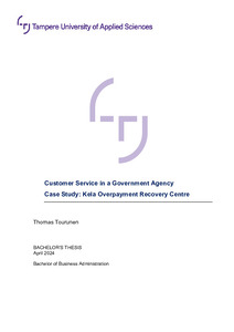 The primary aim of this research is to develop a comprehensive understanding of customer service within a governmental organization, utilizing the operations of the Kela Overpayment Recovery Team as a specific case study. The study is particularly focused on elucidating the benefits managed by the Overpayment Recovery Center, thereby depicting the current state ("AS-IS") of its operational processes and environment.