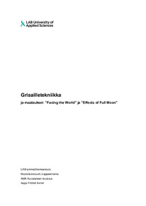 Opinnäytetyö käsittää kaksi grisailletekniikalla maalattua öljymaalausta ”Facing the World” ja ”Effects of Full Moon” sekä kirjallisena osana katsauksen grisailletekniikkaan, historiaan, esimerkkejä tunnetuista grisaille teoksista sekä kuvauksen omasta maalausprosessin etenemisestä puolivalmiiden teoksien kautta valmiiksi teoksiksi. Työ sisältää pohdintoja oman taiteellisen identiteetin löytämiseksi sekä työn aikana havaittujen asioiden analysointia. Maalaukset olivat LAB opinnäytetöiden yhteisnäyttelyssä Imatran taidemuseossa 5 - 15.3.2024.