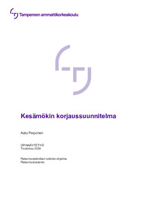 Opinnäytetyössä selvitettiin aistinvaraisesti vuonna 1978 valmistuneen alkuperäiskuntoisen kesämökin rakenteiden kunto ja korjaustarve. Aistinvaraisesti tehdyssä nykykunnon ja korjaustarpeen arvioinnissa tarkasteltavat kohteet olivat rakennuksen rakenteet sekä perustuksien kosteustekniseen toimivuuteen liittyvät salaojat. Arvion pohjalta laadittiin kohteelle korjaussuunnitelma sekä alustava kustannusarvio.