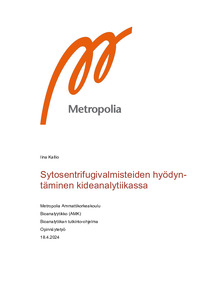 Opinnäytetyön aiheena oli tutkia sytosentrifugivalmisteiden hyödyntämistä nivelnesteiden kideanalytiikassa. Nivelnesteen tehtävä elimistössä on voidella niveliä, joka mahdollistaa kehomme liikkeet. Nivelnesteessä ei normaalitilanteessa esiinny kiteitä. Uraatin kiteytyessä niveliin syntyy kihti, jonka löydöksenä on natriumuraattikiteet. Mikäli nivelrustoihin ja kierukoihin kertyy kalkkia ja se pääsee vapautumaan niveliin, viittaa se valekihtiin, jonka löydöksenä on kalsiumpyrofosfaattikiteet. Kiteitä on tutkittu pitkään samalla menetelmällä pipetoimalla nivelnestenäytettä objektilasille. Maailmalla on tutkittu aihetta ja tutkimusten mukaan on todettu sytosentrifugoinnin tuovan kiteitä paremmin esille erityisesti näytteissä, joiden solumäärä on pieni. Tämä mahdollistaa yleistyvän kihdin sekä valekihdin diagnostiikan parantamisen.