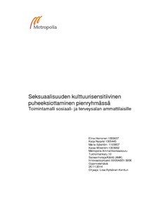 Seksuaalisuuden kulttuurisensitiivinen puheeksiottaminen pienryhmässä : toimintamalli sosiaali- ja terveysalan ammattilaisille