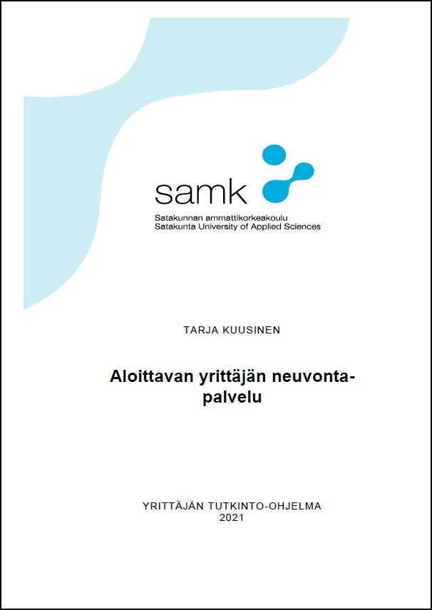 Opinnäytetyö tarkastelee Satakunnan Yrittäjät ry:n keväällä 2021 aloittamaa Aloittavan yrittäjän neuvontapalvelua. Satakunnan Yrittäjät ry on toimeksiantajana työssä. Tarkoituksena oli tutustua palvelun aloittamiseen ja haastatella palveluun eri lähtökohdista liittyviä henkilöitä ja tehdä tutkimusta heidän tarpeistaan ja toiveistaan palvelun suhteen sekä siitä, mitä tällaisen palvelun ja neuvonnan tulisi aloittavalle yrittäjälle tarjota. Lisäksi opinnäytetyöhön kootaan havaintoja ja tietoa aiheeseen liittyvistä kirjallisista ja sähköisistä lähteistä.