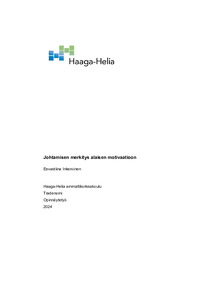 Tämän tutkimustyyppisen opinnäytetyön tavoitteena oli selvittää, miten johtaminen vaikuttaa alaisen motivaatioon ja työhyvinvointiin. Opinnäytetyö toteutettiin toimeksiantona finanssialan yritykselle X, jonka kuutta työntekijää haastateltiin keväällä 2024.