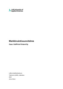 Tämä opinnäytetyö toteutettiin toimeksiantona GolfPoint Finland Oy:lle. Opinnäytetyö toteutettiin kvantitatiivisena tutkimuksena, jonka tuloksena luotiin yritykselle markki- nointisuunnitelma. Toimeksiantajalla ei ole ollut aiemmin markkinointisuunnitelmaa, joten työn vaikutus tulevaisuuden markkinointiin on suuri. Tämän opinnäytetyön ta- voitteena oli luoda GolfPoint Finland Oy:lle markkinointisuunnitelma, mitä yritys voi käyttää sellaisenaan tai inspiraationa markkinointikampanjoissaan.