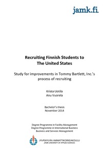 Recruiting Finnish Students to the United States : Study for improvements in Tommy Bartlett, Inc.'s process of recruiting