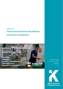 Videolla näytetään kuvan ja äänen muodossa potilaan hoitoprosessi akuuttihoidon palvelualueen sisällä. Videolla esitellään akuuttihoidon palveluyksiköissä hoitohenkilöstön työnkuvaa sekä työtiloja Kainuun keskussairaalassa. Esittelyvideo sisältää paljon teoreettista tietoa palvelualueesta.