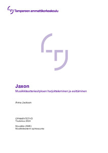 Tässä opinnäytetyössä tarkasteltiin Tampereen Ammattikorkeakoulun laulun loppututkintoa nimeltään Jaxon, joka on pop-musiikkiesitys, joka yhdistelee tanssia, sekä draamaa. Työssä tarkastellaan Jaxon-projektin valmistumisprosessia, sen arviointia, itse esitystä, sekä esityksen jälkipuintia. Projektin tarkoituksena oli luoda esitys, joka toimii Jaxon-projektin prototyyppinä, sekä samalla suunnannäyttäjänä projektin kehittämiselle. Tavoitteena on tutkia Jaxon-projektin tekoprosessia.