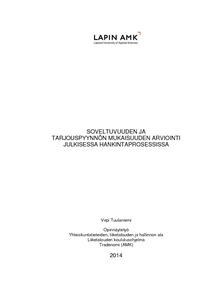 Tämä opinnäytetyö on tutkimuksellinen kehittämistyö, jonka tavoitteena on selvittää, miten hankintayksikön tulee toimia arvioidessaan ehdokkaan tai tarjoajan soveltuvuutta ja tarjouksen tarjouspyynnön mukaisuutta julkisessa hankintaprosessissa. Toisena tavoitteena on tuottaa työn toimeksiantajalle, Lapin Informaatioteknologia LapIT Oy:lle hankintaprosessin kuvaus. Teoriaosuudessa käytetään lähteinä lainsäädäntöä, lain esitöitä, oikeustapauksia, kirjallisuutta, viranomaisohjeita ja artikkeleita. Tutkimusosuus perustuu hankintoja ohjaavien ja toteuttavien henkilöiden teemahaastatteluihin.