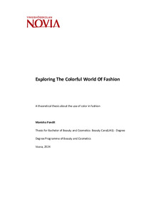 The main aim of this thesis is to research information about the impacts of different colors in fashion either positively or negatively. It is to benefit fashion consumers by understanding how different colors may influence perceptions and emotions. This knowledge can empower individuals to make more intentional and satisfying choices in their personal style. The consumers may become more informed about the color strategies employed by brands, making it easier for them to select products that align with their preferences and values. This research and its results can provide understanding into the psychological and emotional effects of different colors, helping fashion consumers to make decisions about color choices while purchasing.