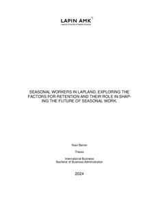 The main subject of this thesis is Seasonal workers in Lapland. This research was done in order to answer 2 research questions. What are the factors that contribute to the seasonal workers’ decision to extend their stay in Lapland? What is the role of seasonal workers that stayed in Lapland in the future of seasonal work?