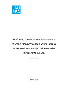 Mitkä tekijät vaikuttavat sairaanhoitajaopiskelijan päätökseen valita lopulta leikkaussairaanhoitajan tai anestesiasairaanhoitajan ura?