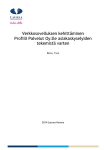 Tässä opinnäytetyössä tutkittiin verkkosovelluksen kehittämistä Profiili Palvelut Oy:lle asiakaskyselyiden tekemistä varten. Ennen tutkimusta suoritettiin tiedonkerääminen ohjelmoitavaa verkkosovellusta varten. Valmiissa sovelluksessa on valittu kuusi erilaista kysymystä, joiden vastaukset kerätään SQLITE3-tietokantaan, josta tieto viedään Excel-tiedostoon. Verkkosovellus oli ohjelmoitu laskemaan tulokset automaattisesti, jotta säästyttiin inhimillisiltä virheiltä ja vääränlaiselta palvelukehitykseltä.