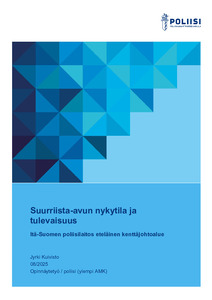 (2025)Tämän opinnäytetyön tavoitteena on selvittää, mikä on suurriista-aputoiminnan (SRVA) nykytila ja tulevaisuus Itä-Suomen poliisilaitoksen eteläisellä kenttäjohtoalueella. Aihetta on syytä tutkia, koska Itä-Suomessa yksittäiset ... -