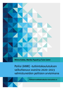 Poliisiammattikorkeakoulun katsauksia : 40 (Poliisiammattikorkeakoulu, 2025)Tässä katsauksessa raportoidaan poliisi (AMK) -tutkintokoulutuksesta vuosina 2020–2021 (raportointivuosi 2023) ja 2022–2023 (raportointivuosi 2025) valmistuneiden arviot poliisikoulutuksesta. Vastaamishetkellä valmistumisesta ... -