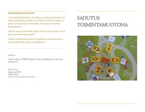 Kokosimme päiväkodin henkilökunnan käyttöön sadutuksesta ja siihen liittyvästä toiminnasta kertovan opaslehtisen, jotta henkilökunta voisi jatkaa alulle laittamaamme toimintamallia. Henkilökunnan toiveiden mukaisesti teimme opaslehtisestä tiiviin ja informatiivisen paketin: kuvaamme sadutus-menetelmän pääkohdat ja havainnollistimme teoreettista osuutta omasta toiminnastamme valikoiduilla esimerkeillä.